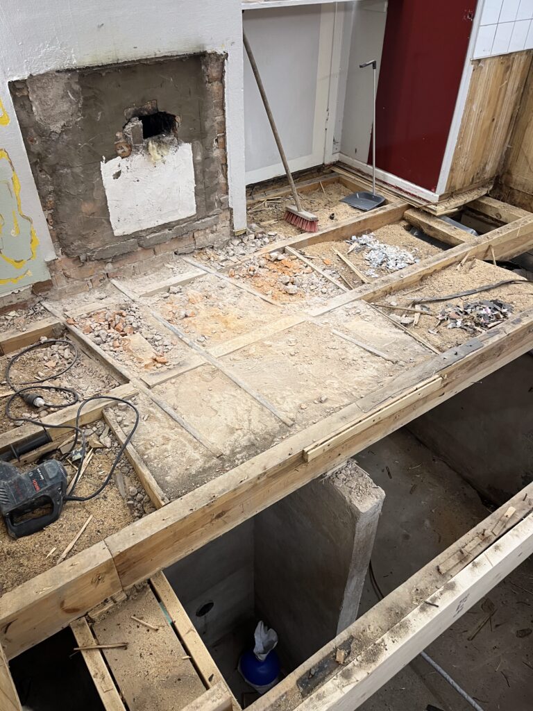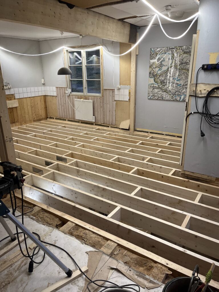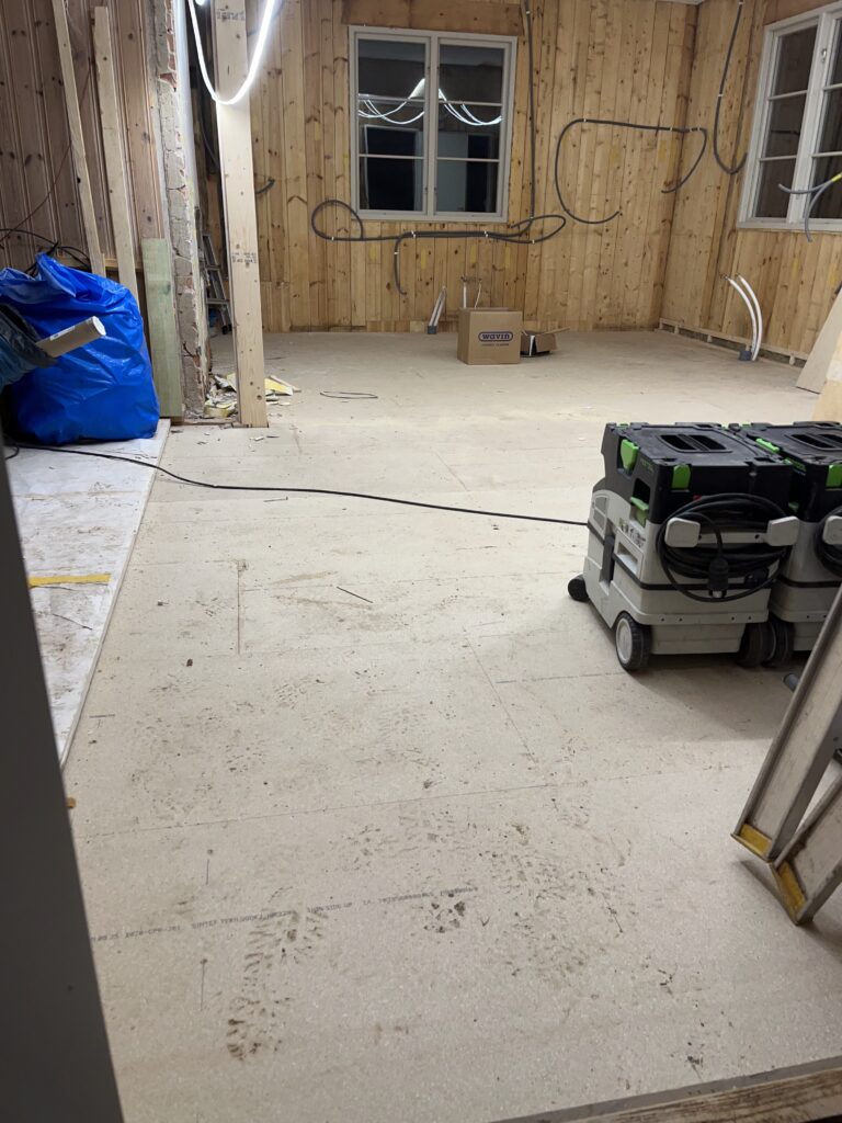 Spånskivor klart, nu är det slut på risk för fallolyckor. Skönt både för oss och vår uppdragsgivare.