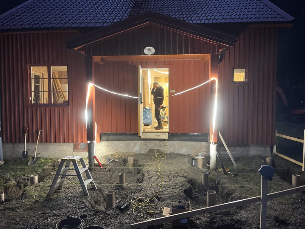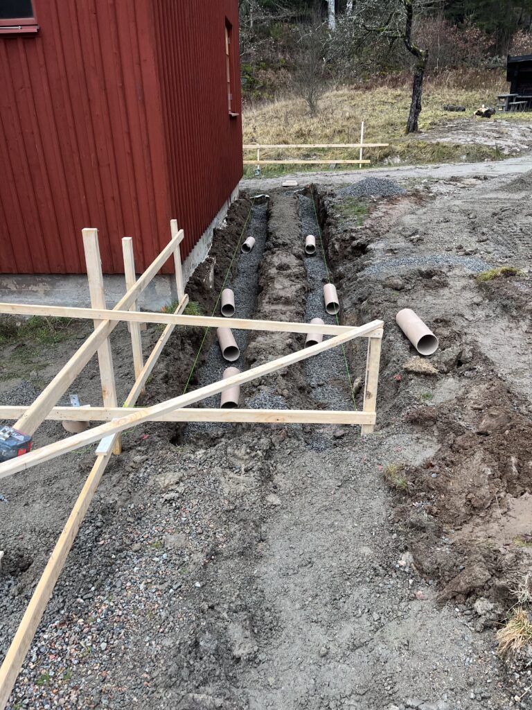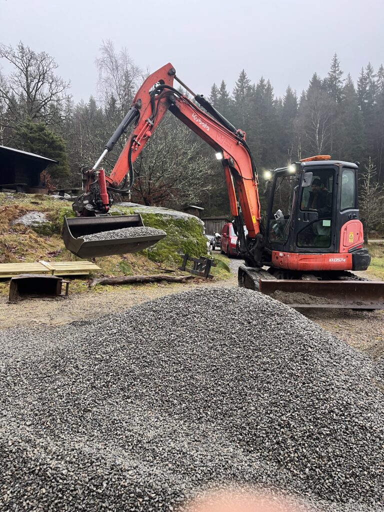 Vi får hjälp av eminenta Göran på Bergholtz trädgård och hantverk med schaktning, dränering och grävning för plint.